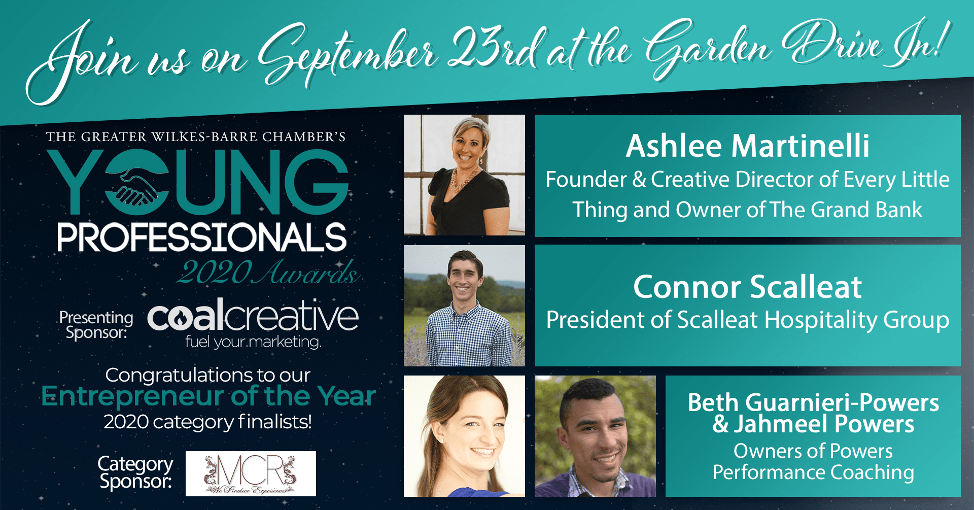 Make sure to join us on September 23rd at our in-person, fun, and safely done event at the Garden Drive In to celebrate these finalists from the comfort of your own vehicle and to hear the category winners announced live on stage! Make sure to make your ticket reservation before the deadline of September 18th! Click here to register today!